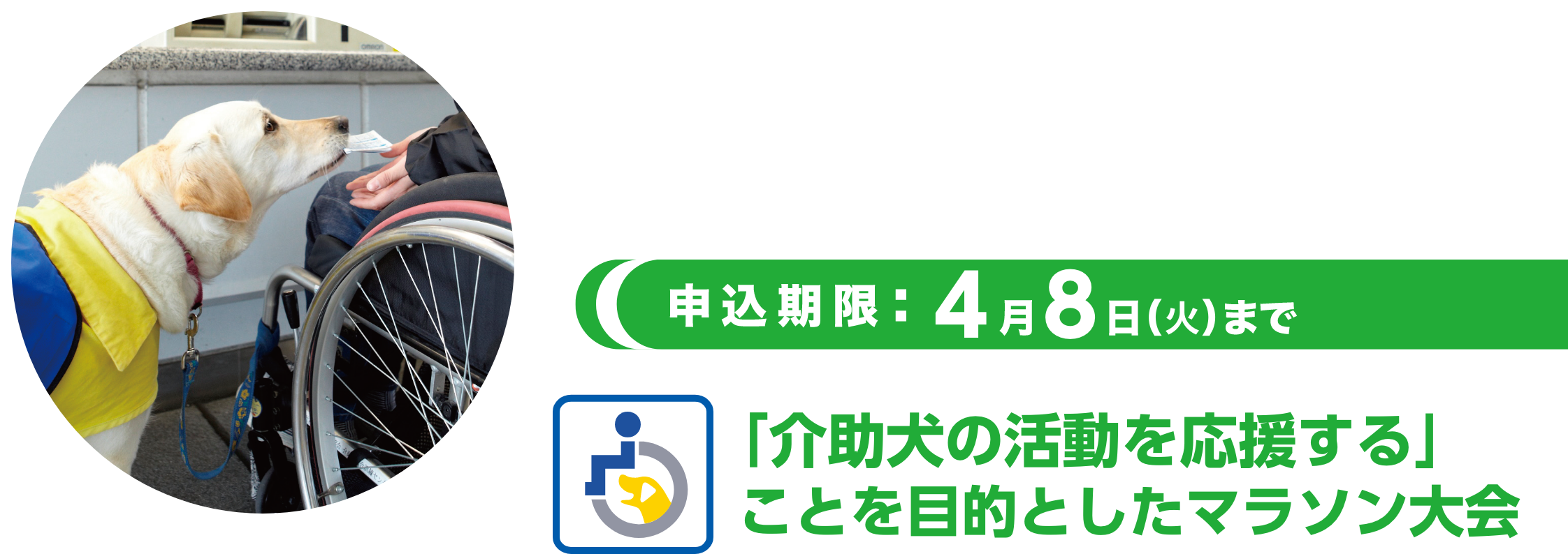 介助犬を必要としている人は約15,000人いると言われていますが、介助犬の数は70頭あまりしかおらず、まだまだ不足しています。また、身体障害者補助犬法により介助犬と共に社会参加することが認められていますが、認知度が低いことで同伴拒否が絶えないのが大きな課題です。マラソンを通して、介助犬の普及が出来るように皆様からの応援をよろしくお願いします!